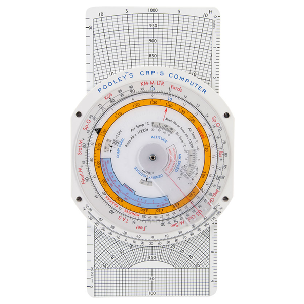 Designed particularly for the professional pilot, it includes all necessary functions for the commercial and airline transport pilot examinations. Circular slide rule side with clear durable cursor. For calculation and conversion of temperature, time, distance, volume, altitude, speed, weight, fuel, endurance, multiplication and division, 1 in 60 rule, compressibility correction etc. Coloured scales and lettering enhance operation and clarity.