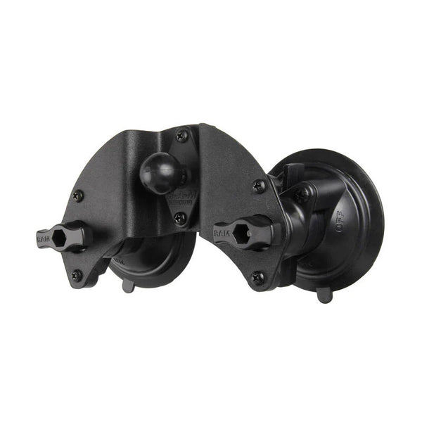 - La base de ventosa doble RAM Twist-Lock es ideal para parabrisas de vehículos y otras superficies no porosas; La función pivotante permite la fijación a superficies curvas.