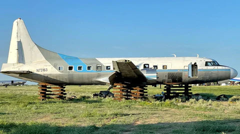Convair CV-580 que voló por primera vez en 1956 y pasó la mayor parte de su carrera con la aerolínea nacional de Bélgica, SABENA, durante 11 años, luego con Frontier Airlines durante otros 18 antes de volar para aerolíneas de cercanías más pequeñas. N73163 fue retirado y almacenado desde 1995 hasta que MotoArt tuvo la oportunidad de conservarlo este año.