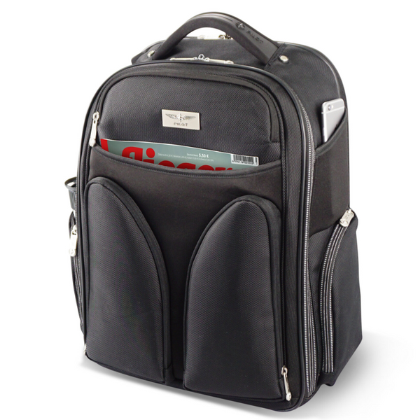 Il y a un compartiment organisateur verrouillable pour les papiers au dos. Deux compartiments sont étiquetés VFR et IFR, un compartiment en néoprène pour les lunettes, 2 porte-stylos, 4 compartiments de rangement pour les cartes de crédit, les cartes de carburant, etc. et une carte de retournement pour le « statut des horaires de vol ».