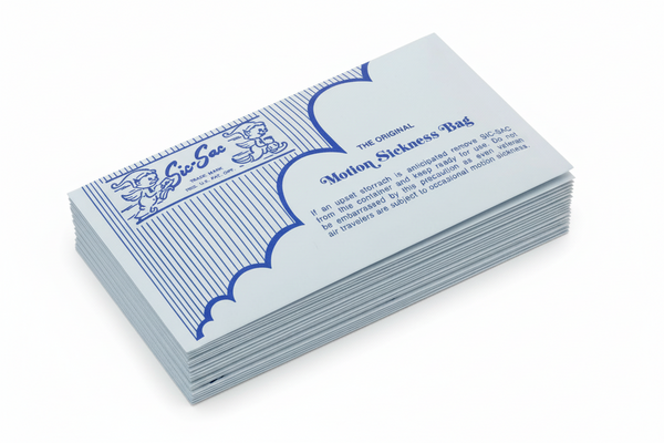 À utiliser en cas d'urgence liée au mal de l'air. Résistant à l'humidité et aux déchirures, même à des températures extrêmes. changements. Emballé individuellement, ch. avec bande à nouer attachée.